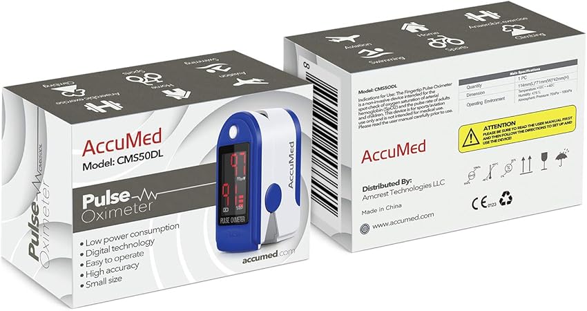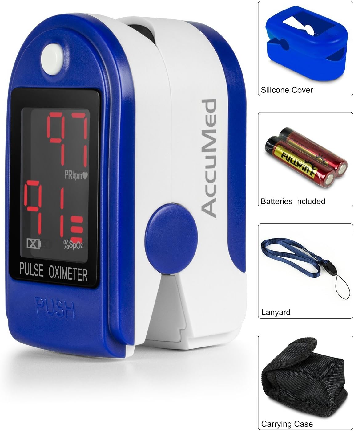 Accumed Cms 50dl Pulse Oximeter Finger Pulse Blood Oxygen Spo2 Monitor W Bag Landyard Case Battery Blue Amazon De Drogerie Korperpflege